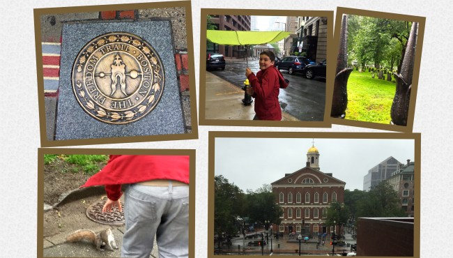 Thanks Boston! Thank you for your history, your accent and your clam chowder. Thank you also for reminding us thirsty and drought-tolerant Californians what torrential rain really looks like. My 13 year old (who is still sleeping) has never walked around a city in 50 mile an hour winds and driving rain, but he will today. He doesn’t know the many aromas associated with a commuter train filled with strangers of all shapes and sizes, but he will today. Finally, he doesn’t know the mileage associated with walking from Faneuil Hall to the end of Newbury Street, but he will today. If he is still speaking to me by the end of the day, I am sure he, too, will be grateful for your glorious weather, as well, Dear Boston….